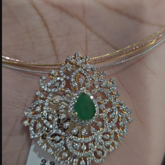 Beautiful diamond pendant and necklace set with stud earrings in emerald stone