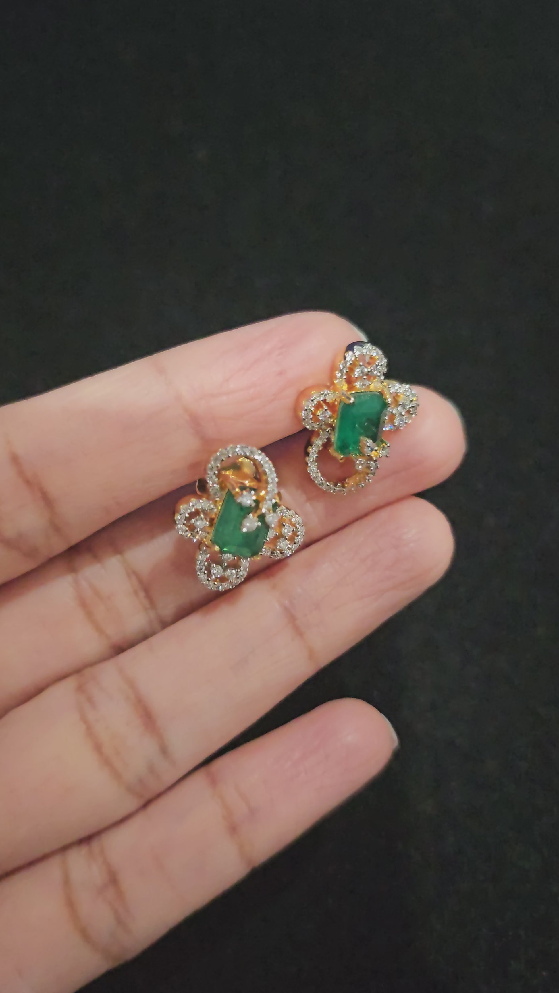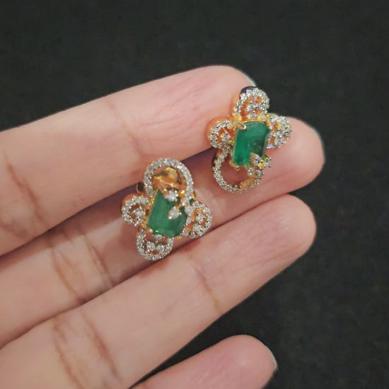 Beautiful crafted Earrings with statement emerald stone and premium grade CZs to shine with screw back closure