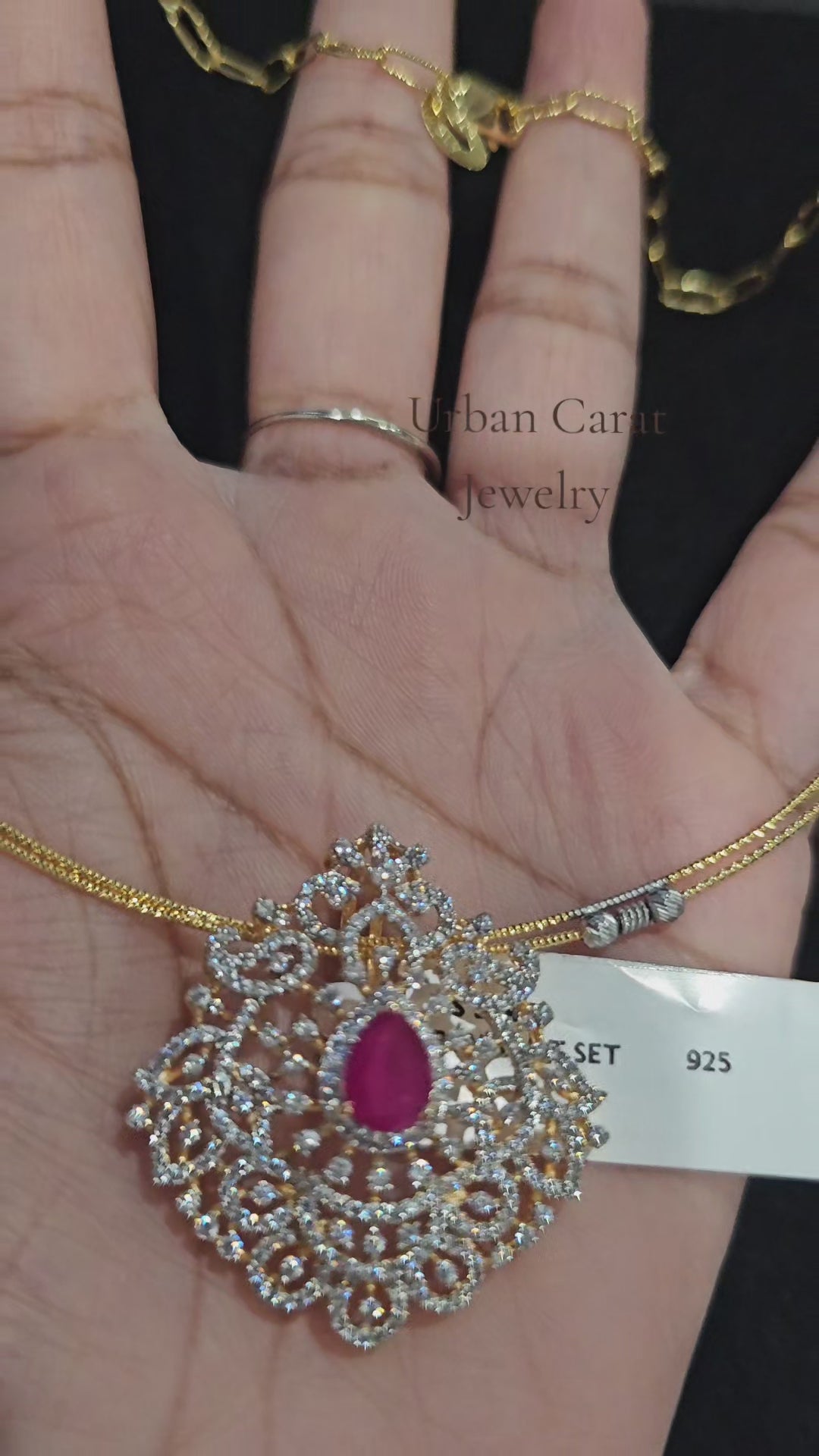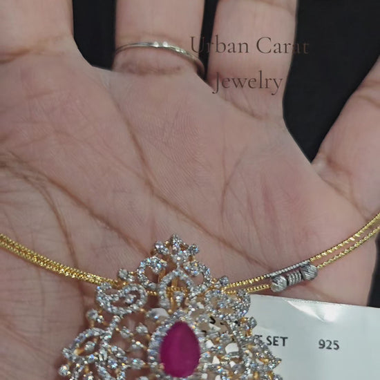 925 Silver Ruby Diamond Pendant Necklace and Earrings Set, Detachable pendant