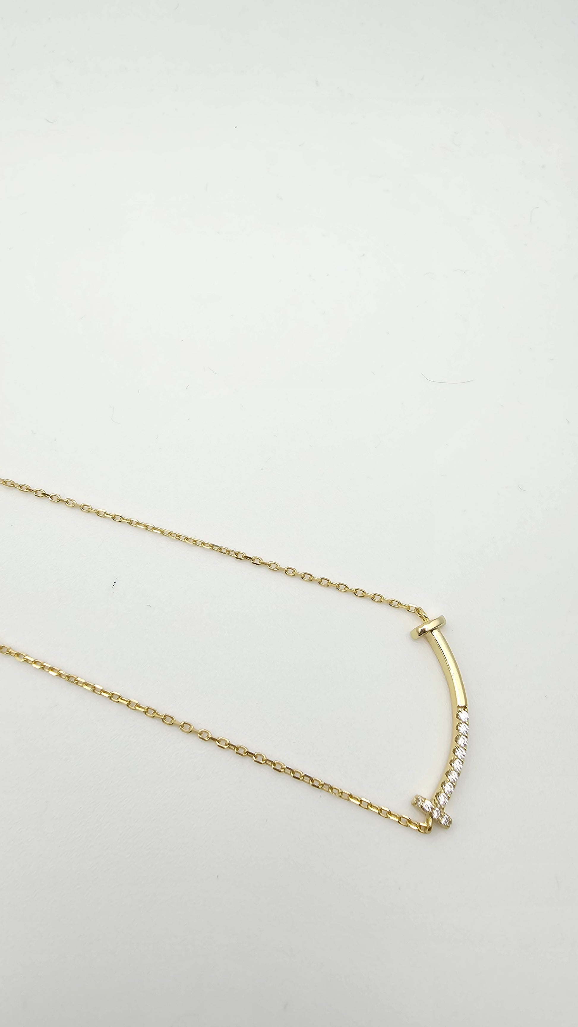 Dainty T-Smile Pendant with stone accents, 925 Silver, 16" + 2"