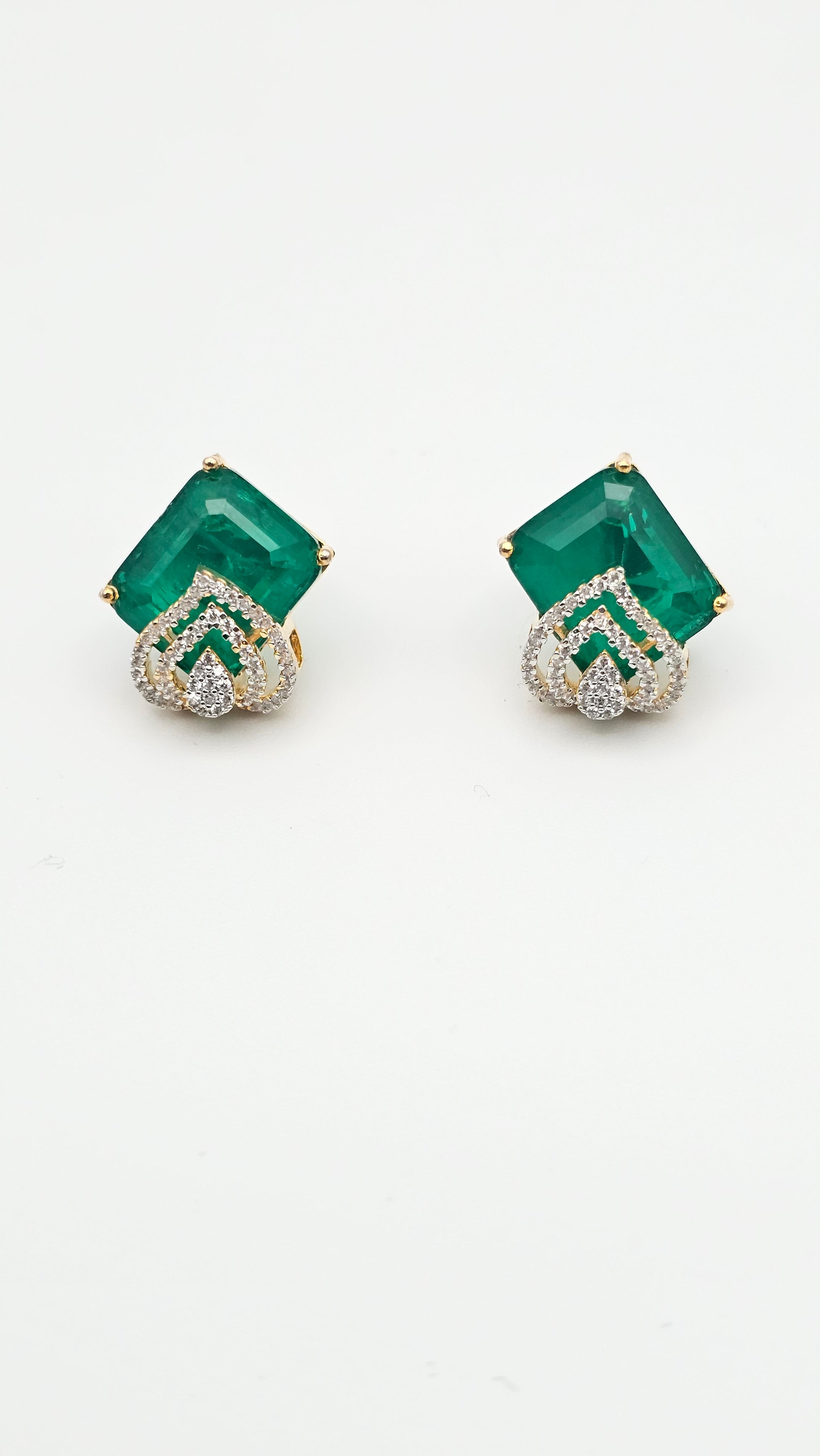 Leaf cut emerald earrings with premium CZs to elevate your style statement.
